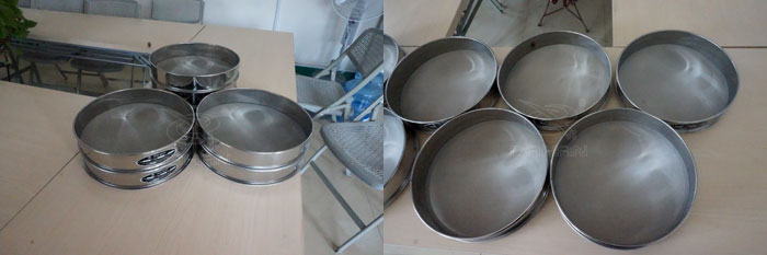 標(biāo)準(zhǔn)篩測定物料粒度組成所使用的一套標(biāo)準(zhǔn)篩具。是篩析的主要工 具。它是由一套篩孔尺寸大小有一定比例的、篩孔寬度和篩絲直徑都按標(biāo)準(zhǔn)制造的直徑為200mm的若干層圓形篩子所組成。有蓋和底,可手工操作也安裝在機上進(jìn)行篩分。只要知道篩比和基篩這兩個參數(shù),就可以算出該系列標(biāo)準(zhǔn)套篩的各個篩子的篩孔尺寸。根據(jù)篩比和基篩篩孔尺寸的不同,分成各種標(biāo)準(zhǔn)篩制。